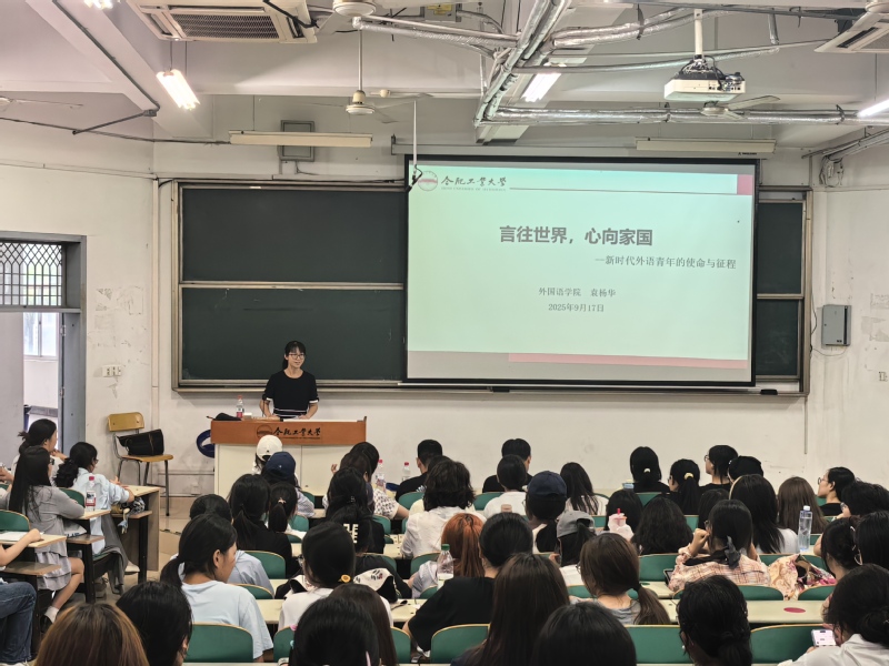 2025年9月17日下午,学院于翡翠湖校区9教101开展2025级新生理想信念教育专题讲座。学院党委副书记兼纪委书记袁杨华以《言往世界,心向家国:新时代外语青年的使命与征程》为题,为全体2025级本研新生进行了一次深刻的入学思想动员。