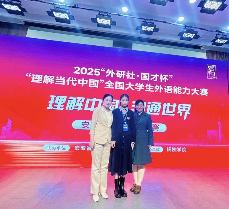 2025年“外研社·国才杯”“理解当代中国”全国大学生外语能力大赛(安徽赛区)于11月1日至2日在铜陵学院成功举办。本次大赛包括英语组和多语种组,分设演讲、口译、综合能力、笔译和短视频五个赛项,共有来自47所本科院校的446名同学参加了线上和线下赛项。大赛群英汇聚,精彩纷呈。经过激烈竞争,本校选送的选手共斩获一等奖2项、二等奖5项、三等奖8项,其中四人(团队)晋级全国决赛,充分展现了我校学子扎实的语言功底、全面的综合素养与出色的跨文化沟通能力。